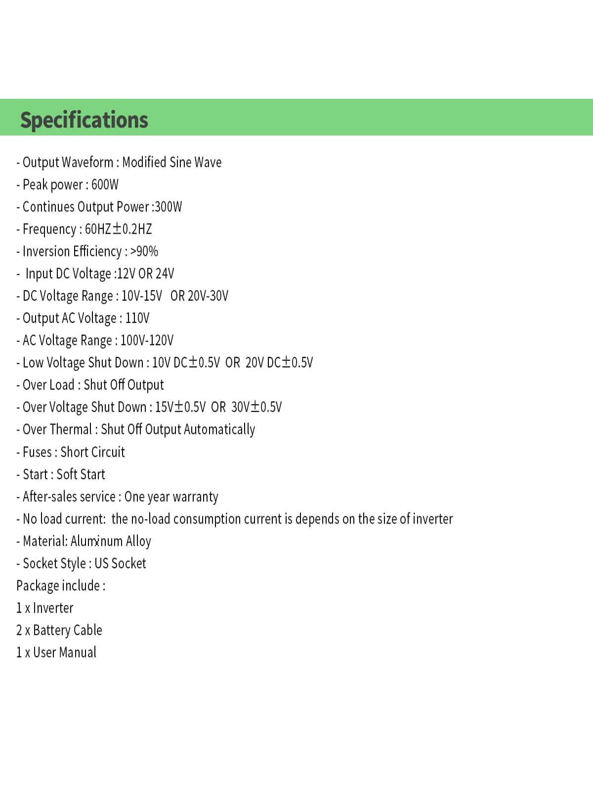 Car Vehicle Power Inverter 300W/600W DC 12V To AC 110V 120V Converter 2 USB