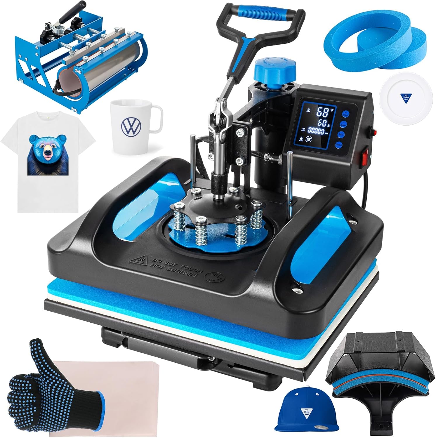 👗 Wide Range of Uses — T shirt pressing machine combo can be used for T-shirts, caps, ceramic plates, hats, ceramic tiles, mugs, coasters, mouse pads, jigsaw puzzles, lettering and other flat items. Suitable for ceramics, glasses and textiles such as cotton, flax, chemical fiber, nylon, etc. Different sizes of mug presses in the package could meet different transfer demands for you. Adaptable to your various individual needs.